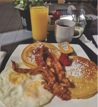 Restaurante tranquilo que ofrece platillos abundantes de gastronomía tradicional y desayunos estilo occidental.
